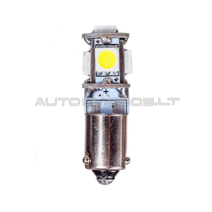 BAX9S 434, H6W cokolio 5 SMD 5050 LED diodų lemputė su įmontuotomis varžomis, kurios padės išvengti lemputės mirksėjimo ir klaidų borto kompiuteryje.